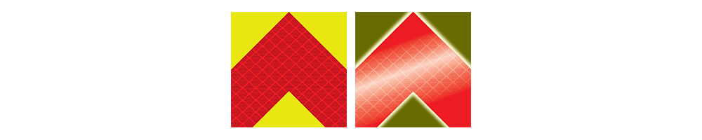 - Use of fluorescent yellow (non-reflective) for daytime visibility